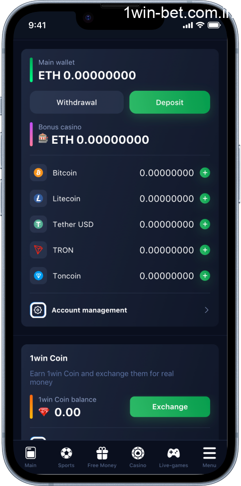 Inside the 1win app India, you can transfer money easily. Over 20 payment instruments are at your disposal, most of which are cryptocurrencies. Most transactions are made in several minutes, and the limits set are rather accessible.